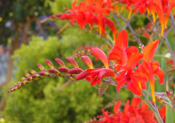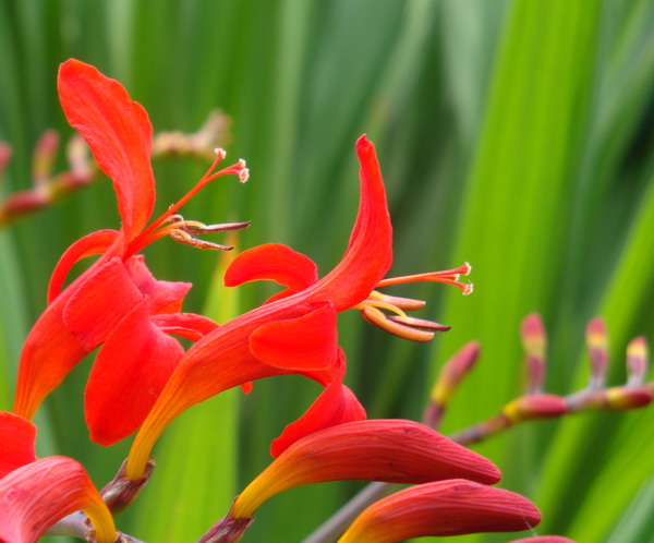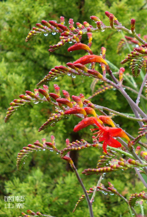 Crocosmia 香鳶尾屬,另有品種Lucifer──希臘神話中的拂曉之星,即金星。不知為何中文譯名為「火星花」 ?