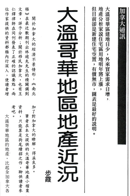 大溫哥華地區地產近況