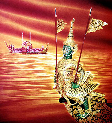 "สุครีพครองเมืองครี สุรนาวีมุ่งชิงไชย เรือปืนยืนยุทธไกร เหมือนพญาพานะเรนทร์ ..." |