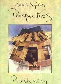- Polaroids '82 -'84 large format, hard-cover art-book showing polaroid collages David did in the years between 1982 and 1984. Perspectives might be the most valuable Sylvian item of all. It's currently being sold for 150 UK pounds. The cover shows Holger Czukay sitting on the steps of the Berlin "Meistersaal" where they recorded songs like "Brilliant Trees" for Sylvian's first solo record and where David again performed his Slow Fire concert in 1995. The Meisersaal was standing right beside the former Berlin Wall. The most collectable Sylvian item is the Japanese version of Perspectives. Only 500 copies were ever made (through Sakamoto's Publishing Company in Japan) and it's almost impossible to get. It reportedly folds out into one large piece. |