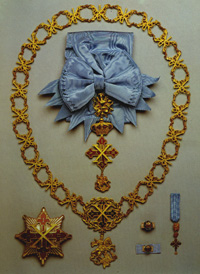 The ribbon of the Order is watered sky-blue silk.