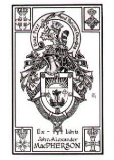 The Badge of the Constantinian Order can be seen in the upper right hand corner of Fra' Macpherson's bookplate.