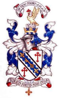 Suspended below the Shield of Arms is the insignia of a Knight of Merit of the Constantinian Order. This is the only example, that I have found, suspending the insignia of the Sacred Military Constantinian Order of St. George from Arms granted to a Canadian. These Arms were granted by the Canadian Heraldic Authority on April 23, 1996.