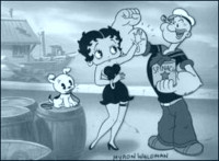 Por supuesto, la imagen de Popeye era ideal para la guerra, de modo que cuando estalló la Segunda Guerra Mundial, este marino apareció en los afiches con que la armada norteamericana llamaba a los jóvenes a sumarse a la lucha. En 1933, los hermanos Max y Dave Fleischer - creadores también de Betty Boop, entre otros- llevaron a este violento marino al cine, en forma de cortometrajes de dibujos animados. Entre ese año y su final, en 1957 se realizaron 229 cortos y 3 mediometrajes, con un resultado bastante desparejo. A los Fleischer les siguieron en la dirección Isadore Sparber, Dan Gordon, Seymour Kneitel, Bill Tytla y Dave Tendlar. Her honor, the mare -de 1943- es la primera aventura de Popeye en dibujos animados que apareció en color. A partir de allí, 106 filmes siguieron ese camino, aunque la mayoría de estos nuevos cortos fueron remakes de la época anterior, en blanco y negro.