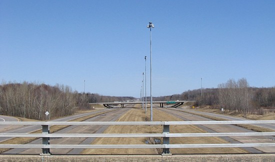![]() Route 223 nord, jonction Autoroute 30, Sorel-Tracy. À l'arrière plan, le pont de la rivière Richelieu. |