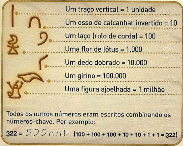sistema numeração egípcio, que se baseava em 7 símbolos para representar 7 números-chave.