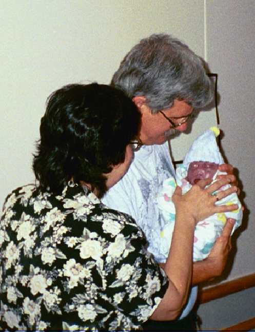 We got to see the doctor. Because we'd suddenly become a "high risk" case, we were seeing one of the practice OBs. She wasn't very nice. That's all I can say about her character. I think she was mad that we'd taken the choice out of her hands about whether to terminate. She tried to scare us. She said things like "These babies are pretty hideous" (you're not Miss America yourself, honey) and "If we don't induce, you could carry her for fifty-five weeks" (gee, I always wanted to be in the Guiness Book of World Records.)
