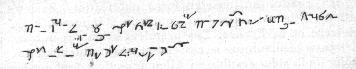 Su alfabeto contiene las cinco vocales, las que se suprimen a principio o fin de palabra. La línea de escritura es un pentagrama imaginario. Las palabras se escribían por sílabas.
