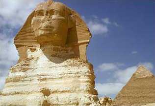 The Sphinx (embodies the body of a lion and the head of a pharaoh, is believed to be the head of Khafre and his guardian spirit for his entire burial complex. Carved from the natural limestone of Giza, the sphinx has disintegrated over the years, entire pieces dropping off to the desert floor below. It is not known to have chambers inside, like those found in the pyramids at Giza.Dates Built: Most archaeologists say the Sphinx is about 4,500 years old. But some claim that vertical weathering patterns on the Sphinx could only have been made thousands of years earlier Base: 187 feet (57 m) in length Total Weight: undetermined Width: Face is 20 feet (6 m) wide Height: Total height is 66 feet (20 m), 30 feet (9.15 m) high from chin to head Construction Material: Soft limestone)