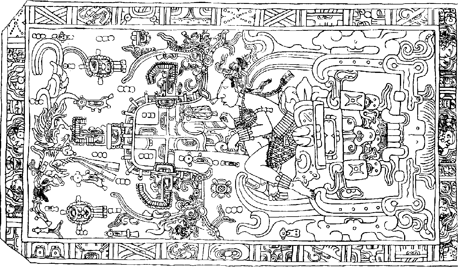 lid is carved with a scene of Pacal at the moment of his death.