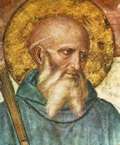 Anacoreta italiano nacido en nursia (ducado de spoleto) en el año 480. Su madre murió al darle a luz. Cuando apenas tenía catorce años salió de Roma, donde había ido a estudiar, con su nodriza Cirila huyendo de los ejércitos bárbaros y se internó en las montañas de subiaco. Siguió internándose más y más en la soledad en la que pasó tres años soportando los rigores del invierno, el calor del verano, el hambre y la sed. Hombre de diamante le llama el papa Zacarías.