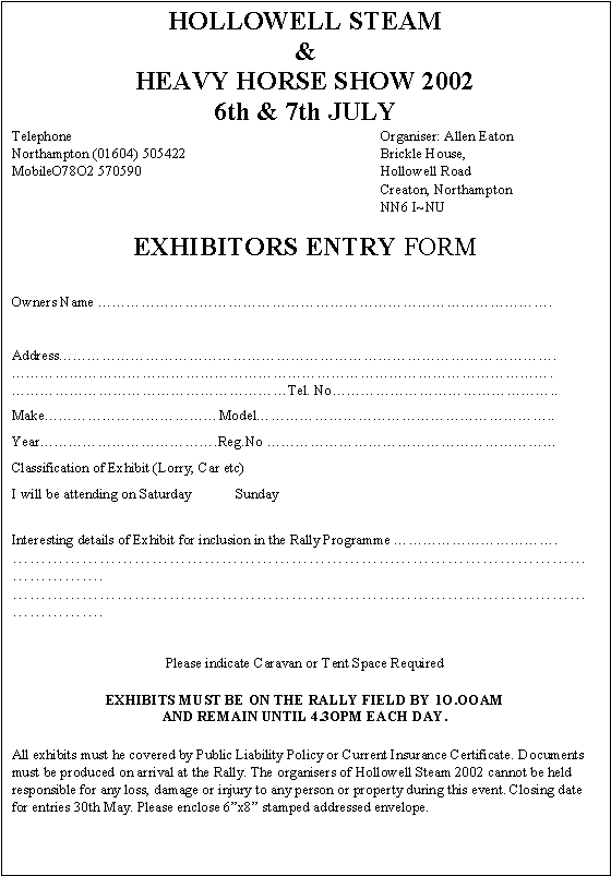 year. Admission for exhibitors Friday morning, please vacate the site by