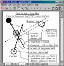 A diagram of how to aim a pool shot by using the 'ghost cue ball' method. It is a PDF file, and was produced by using FreePDF, which I wrote, around 2000. |