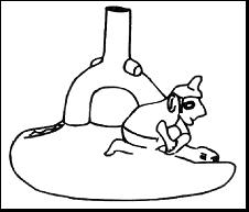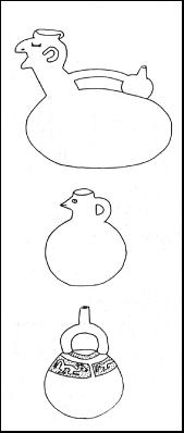lateral en el gollete, que remata con una cabeza de ave. No tiene decoración. Vasija globular, con decoración de animales en su
