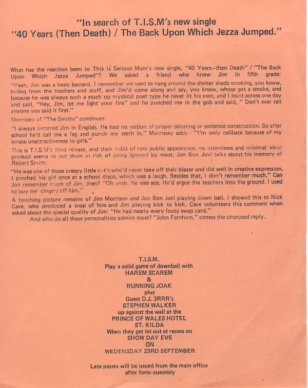 Some reviews of TISM's last show at the Palace, from the late 80s/early 90s