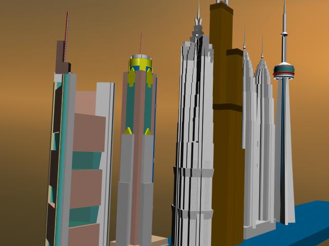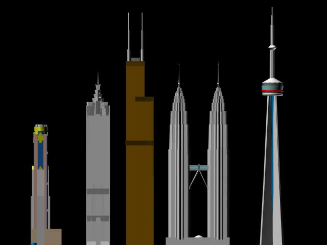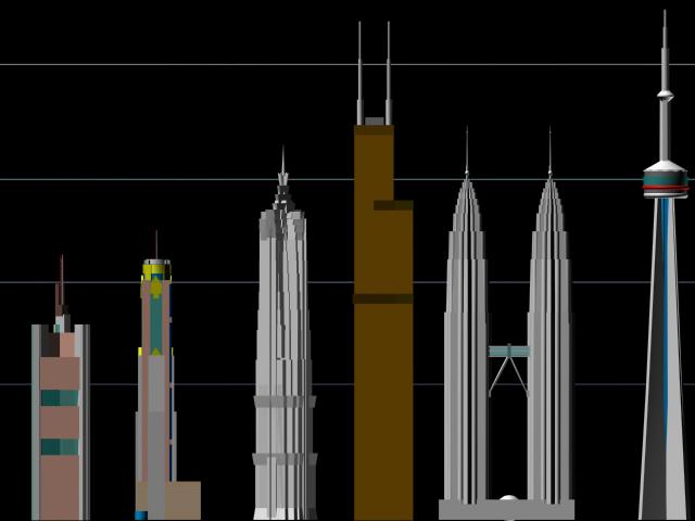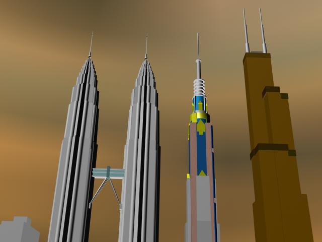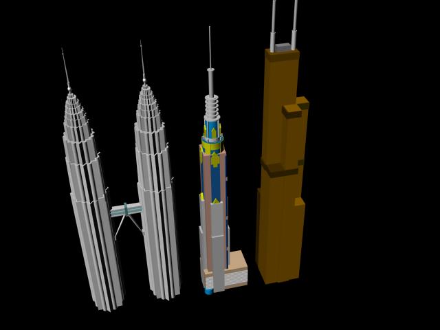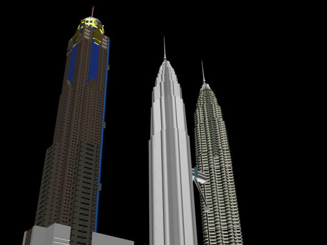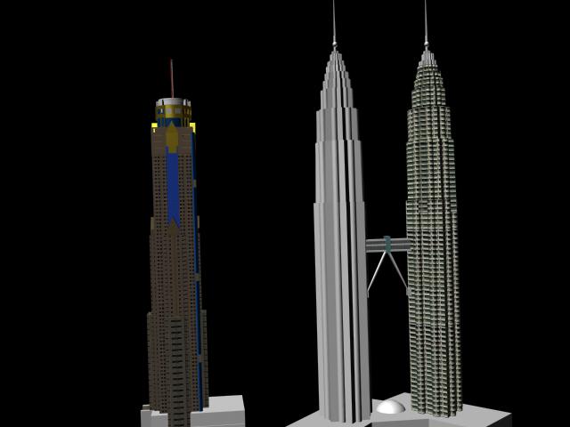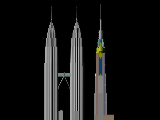 | The current world's tallest buildings, the twin Petronas towers in Kuala Lumpur is officially 130m taller than Baiyoke2 Tower. So how does these mammoth 88 storey towers stand against Bangkok's tallest ? I figured a scaled 3D model would give us a rough idea for comparing the two.. | ||||||||||||||||||||||||||||||||||