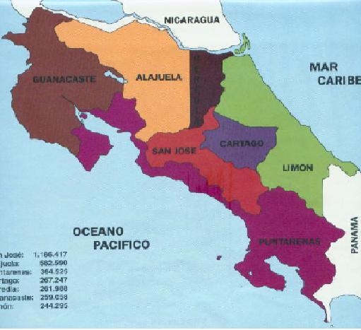 es un pequeño Esta dividido en 7 provincias que son: San José, Alajuela, Heredia, Cartago, Puntarenas, Limón y Guanacaste .