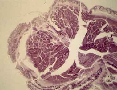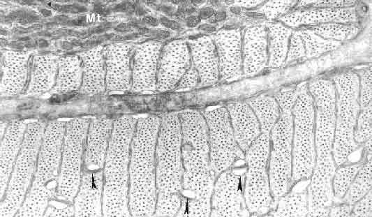 Le fibre muscolari sono delimitate da un sottile epitelio che delimita gli spazi.