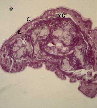 Sezione trasversale. Sono visibili: cuticola, epitelio e muscoli circolari.