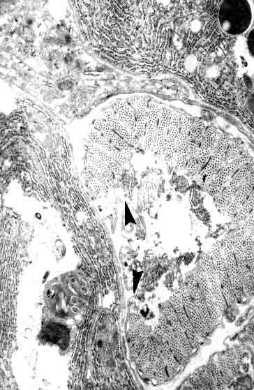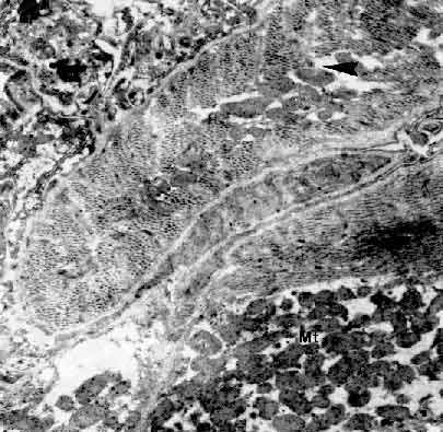 Le fibre presentano il materiale citoplasmatico occupato da mitocondri.