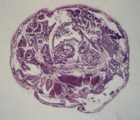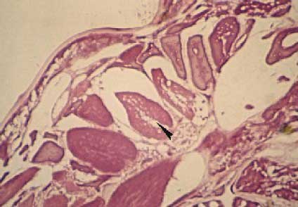 Sezione trasversale di Pterodrilus.Sono evidenti le fibre longitudinali con materiale contrattile aperto.