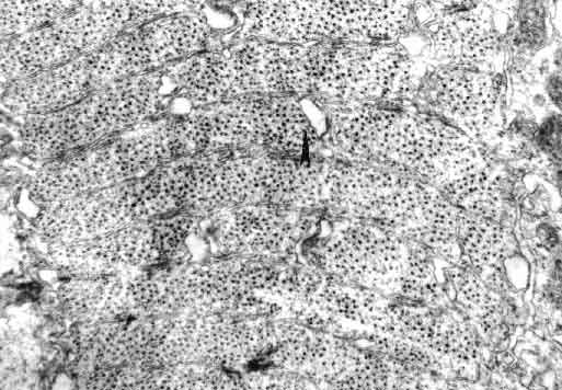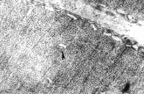 Sezione trasversale: il materiale cotrattile � particolarmente spesso, le diadi sono sparse.