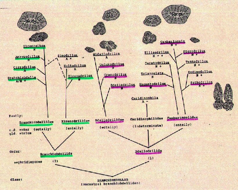 Sono state confrontate la morfologia e l'ultrastruttura dei muscoli della parete corporea di quindici specie di Branchiobdellidi (Annelida: Clitellata) appartenenti alle famiglie Branchiobdellidae, Xironodrilidae, Bdellodrilidae e Cambarincolidae, per valutare la possibilit� di utilizzare questi caratteri a fini diagnostici, da affiancare alle tradizionali caratteristiche morfologiche impiegate fino ad oggi per la classificazione di questi animali. In tutte le specie analizzate l'organizzazione della parete muscolare risulta molto simile al modello descritto per gli Oligocheti. Immediatamente al di sotto dell'epitelio si osserva un sottile strato di muscoli circolari e, pi� internamente, un pi� consistente strato di fibre longitudinali. Quest'ultimo � organizzato in un doppio strato di fibre, quello pi� interno costituito da elementi di maggiori dimensioni e molto ravvicinati. In tutti i Branchiobdellidi le fibre sono a striatura doppia obliqua. Le fibre di tipo circomiario cilindrico, ad anello contrattile chiuso, sono presenti nelle famiglie Branchiobdellidae e Xironodrilidae, sia nello strato circolare che in quello longitudinale. Gli esemplari appartenenti al genere Branchiobdella presentano esclusivamente questo tipo di fibre. Xironodrilus formosus, unico rappresentante analizzato della sua famiglia (Xironodrilidae) presenta anch'esso solo fibre circomiarie. Alcuni generi di Branchiobdellidae (Ankyrodrilus legaeus, Cirrodrilus n.sp., e Xironogiton instabilis) mostrano anche fibre con materiale contrattile ripiegato ad U, ascrivibili al tipo circomiario cilindrico ad anello aperto. Nelle famiglie Bdellodrilidae e Cambarincolidae le fibre nello strato circolare della parete corporea sono sempre di tipo platimiario. Quelle dello strato longitudinale possono essere di diversi tipi: platimiario o poliplatimiario con anello contrattile discontinuo per Bdellodrilus illuminatus e Uglukodrilus hemophagus. Di tipo pseudocircomiario con il materiale contrattile pi� o meno aperto, ma pi� espanso che nelle poliplatimiarie, in Cronodrilus ogygius, Pterodrilus hobbsi, Magmatodrilus obscurus e Cambarincola fallax. La diversa distribuzione dei vari tipi di organizzazione in cui la fibra a striatura doppia obliqua pu� presentarsi, sembra corrispondere alla suddivisione in taxa dei Branchiobdellidi proposta da Holt.