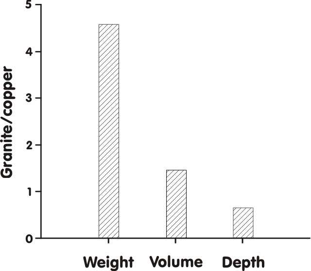 Fig. 22. Ratios of granite/copper lost during the coring drill experiment (after Stocks 2001).