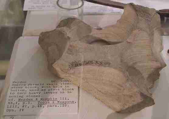 b) Core marks and peg holes on the sarcophagus in the King's chamber of the Great Pyramid (4th Dynasty, Stock 1999, Fig. 8, image 1, image 2).Fig. 7. Spy-hole from the serdab of Djoser near the Step Pyramid at Saqquara (Photograph by Jon Bodsworth The Egypt Archive)