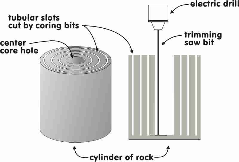 For examples of rock coring in ancient Egypt (see: Petrie, 1883; 1974b, Lucas & Harris 1962, Arnold 1991, Stocks 1999; 2001): a) Spy-holes in the a limestone wall of the serdab of Djoser at the north base of the Step Pyramid at Saqquara (3rd Dynasty, Fig. 7).