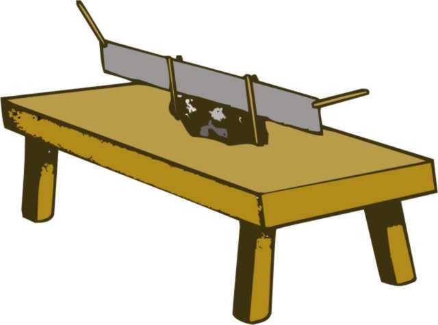 During the experiment striations of varying depths and widths were produced on the cut surface of the granite, which were rough-edged and parallel. These were presumably the result of angular quartz fragments embedded in the sides and bottom edge of the saw, which would have been drawing over the rock surface during the sawing process. Copper is soft enough that abrasive particles can be embedded into the metal, which is what makes this metal an ideal lapping material (Sinkankas 1984). The saw blade was noted by Stocks (2001) to have numerous pits on its sides and bottom. The cutting was observed to be easier in the case of dry abrasive than that of wet abrasive. In the wet test the wetness of the abrasive slurry needed to be monitored, since if it dried the sawing became more difficult. Both the dry powder abrasive and the abrasive slurry were added at either end of the cut slot during the cutting process. New abrasive was continually added to infuse the cutting surface with newer angular grains of quartz, since as cutting occurred the abrasive was reduced in grain size and the angular edges of the quartz grains were rounded off by abrasion making them less effective.Fig. 7. 11th century iron slabbing saw with wooden guild pegs described by Theophilus (after Wainwright 1971).