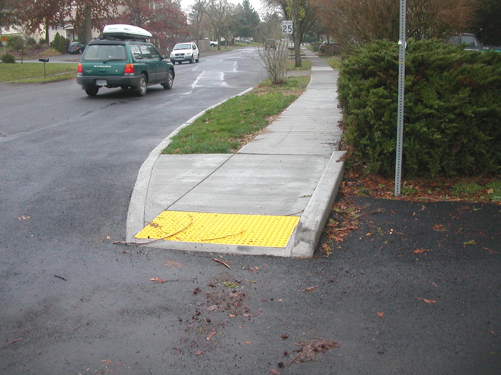 path is a recently installed wheelchair ramp. The ramp extends 5 feet