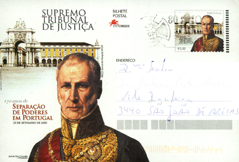 Bilhete Postal editado em 2003, comemorando os "170 Anos de Separação de Poderes em Portugal"; Silva Carvalho foi o 1.º Presidente do Supremo Tribunal de Justiça