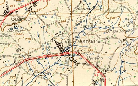 1. ORIGEM DO NOMEÉ tradição entre os naturais de Vila Deanteira escrever Deanteira e não Dianteira, o que nos poderá levar a decompor o nome em Vila de Anteira.O termo Anteira deverá derivar de Anta + eira, correspondendo, por isso, a uma edificação dolménica.O termo Vila remontará ao período romano.Teríamos então uma "villa" num local onde já existia uma anta.Ainda não foram localizados vestígios de qualquer anta, no entanto, na área compreendida entre a Regueiras e as Lajes identificámos abundantes vestígios arqueológicos, proto-históricos e romanos (penedo de culto, material de construção, cerâmica e escórias de ferreiro), testemunhando o seu povoamento pelo homem desde há muito, na ânsia de aproveitar os terrenos férteis das margens do ribeiro.2. VESTÍGIOS ARQUEOLÓGICOS2.1 – PRÉ-HISTÓRICOS — PENEDO DE CULTO (?)O Penedo de Culto situa-se nas Lajes.É um penedo com uma configuração enigmática. Sobressai do solo cerca de 4m na parte mais elevada, inclinando-se até ao solo na outra extremidade.Apresenta no sentido Nascente-Poente, 3 “valas” e, entre elas, no sentido Norte-Sul, 2 ou 3 “regos” escavados na rocha. Capricho da natureza ou trabalho do Homem? Não o sabemos.2.2 – DOMÍNIO ROMANO — VILLA ROMANASitua-se num terreno denominado de Regueiras, perto de uma necrópole escavada na rocha, a que nos referiremos a seguir.Neste terreno encontrámos diverso espólio de origem romana: fragmentos de tijoleira, de tegulae e imbrex (a telha romana), pesos de tear(?), cerâmica de paredes finas, cerâmica comum e ainda fragmentos de peças de grande volume para depósito de vinho ou azeite (“dolium”), para além de outros achados como sejam: plaquetas de xisto (pedras de “oculista”?), pequenos seixos rolados ferretizados, escória ferruginosa de forja e cinza.É provável que se trate de uma Villa, propriedade de um abastado romano que cultivaria o extenso vale fértil do Ribeiro de Vila Deanteira.Por aqui teria existido também uma Necrópole Romana.O rito normal de enterramento na Lusitânia, pelo menos até meados ou fins do século III d.C. foi a incineração, isto é, os corpos eram queimados.Se realmente se trata de uma necrópole romana, os enterramentos deviam seguir as seguintes etapas: incineração do corpo na própria cova, ou fora dela, e em seguida, as cinzas eram depositadas num pote de barro (urna); estas urnas cinerárias eram metidas, com outros vasos de cerâmica e peças ligadas à vida da pessoa morta, em covas resguardadas por telhões, tegulae e imbrices.VER: Jorge de Alarcão, "Roman Portugal", vol. II (Inventário), Fasc. 1, pág. 64, Aris & Phillips Lda, England, 1988; esta informação foi por nós fornecida a seus alunos.2.3 – IDADE MÉDIA — SEPULTURAS ESCAVADAS NA ROCHAAs sepulturas escavadas nas rochas são os vestígios arqueológicos que mais despertam a atenção das pessoas da nossa freguesia. São numerosas. O povo chama-lhes “Covas das Mouras”.São todas antropomórficas, isto é, apresentam o delineamento da cabeça e ombros, e podem encontrar-se isoladas ou agrupadas num penedo. As suas dimensões, em média, são: comprimento - 185 cm, largura de ombros - 50/60 cm, profundidade ao nível dos ombros - 45 cm e ao nível dos pés - 30 cm. A sua orientação é variável.Apresentam-se escavadas no granito de grão grosseiro, característico da nossa região, facilmente desagregável, e, daí apresentarem-se muitas delas deterioradas pelos agentes erosivos. Muitas perderam-se completamente, outras estão reduzidas a vestígios. A acção destruidora do homem também contribuiu, umas vezes com o intuito de utilizar a pedra, outras em busca desenfreada de tesouros escondidos.Não há memória de nesta zona terem sido encontradas sepulturas intactas. Abílio Miranda publicou na revista “Douro Litoral”, 1941, um artigo referindo-se a algumas que encontrou não violadas, sugerindo serem forradas, pela parte interior, de tabuões de madeira.O corpo seria colocado na sepultura acompanhado de objectos votivos, cerâmicas e outros utensílios de uso pessoal. Acreditava-se numa vida depois da morte. A sepultura era tapada com uma tampa de granito e coberta com terra.A origem e cronologia das sepulturas é controversa. Não se conhecem os povos que as escavaram na rocha, nem quando o fizeram. Alguns arqueólogos consideram-na Pré-Romanas, outros Romanas e outros Cristãs e Medievais. Estudos recentes de arqueólogos espanhóis e portugueses estabelecem para o tipo de sepulturas existentes na nossa freguesia uma cronologia entre o século VIII e o X; sendo assim, aos enterramentos romanos seguir-se-iam sepulturas escavadas na rocha, que transitariam para outro tipo de enterramento acompanhando a introdução do ritual cristão.Na área de Vila Deanteira são conhecidas 9 sepulturas que poderemos dividir em três grupos:(a) Grupo da Carreirinha - são 2 sepulturas cavadas num penedo, sito no pinhal da Srª. Maria da Conceição Rodrigues Miranda; estão bastante danificadas.(b) Grupo da Roda/Mato do Caixão - apesar de nos garantirem serem 2 só conhecemos 1, cavada num bloco granítico isolado e ao nível do solo; sito num pinhal que pertenceu ao sr. Manuel Marques; é a de maiores dimensões e apresenta um buraco na zona da cabeça, possivelmente por ter sido reutilizada como lagareta, para nela fazerem vinho.(c) Grupo da Regueiras - é uma necrópole constituída por 6 sepulturas, situadas num pinhal que pertenceu ao sr. Manuel Marques e na mesma área onde se situa a Villa Romana.Encontram-se todas no mesmo bloco granítico; uma delas está praticamente destruída, dela se conservando a parte da cabeça; as cinco restantes encontram-se razoavelmente conservadas; de salientar que uma das sepulturas pertenceu a uma criança, cavada paralelamente a uma de dimensões normais, o que nos leva a supor ter este conjunto pertencido a mãe e filho.Esta última necrópole é o núcleo mais importante que con