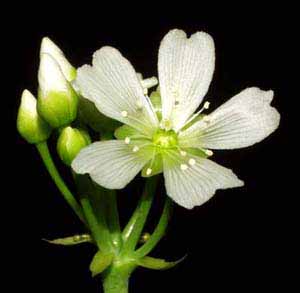 La flores de la Dionaea muscipula crecen en inflorescencias (racimos) en las que nacen entre 3 y 10 rabillos, denominados pedúnculos, que serán los encargados de sujetar a cada una de las flores del racimo.