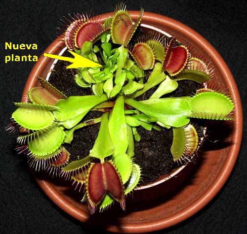 En algunas ocasiones las plantas de Dionaea muscipula producen vástagos que dan lugar a nuevas rosetas, que pueden convertirse en plantas individuales distintas de la planta madre. El mejor momento para realizar la separación es a finales del invierno o principios de la primavera y, en todo caso, antes de proceder a la separación, resulta fundamental verificar que la nueva planta tiene su propio sistema de raíces ya que, en otro caso, la nueva planta no prosperará.