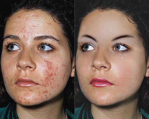 Make the woman pretty using the Dodge tool, Healing Brush Tool. :)
