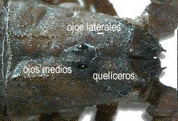Placa única que recubre dorsalmente el prosoma. En la zona media de ésta se encuentran los ojos medios y entre dos y cinco ojos laterales. El caparazón tiene variada topografía, puede ser liso, granuloso, rugoso o tener una combinación de todas estas características. Mientras que los ojos laterales son poco desarrollados, sólo tienen el cristalino, la retina y el nervio óptico, los ojos medianos están formados por el cristalino, el cuerpo vítreo, la retina, la postretina y el nervio óptico.
