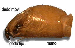 Los quelíceros son apéndices pares en forma de pinza o quela, que se encuentran a los lados de la boca. Se utilizan en la alimentación y aseo.