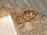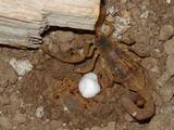 Tendrán que pasar todavía por diversas mudas, o sea que, periódicamente, tendrán que desprenderse de su exoesqueleto para poder crecer, hasta llegar a su madurez sexual o estado adulto; llegado el momento, buscarán a su pareja para llevar a cabo el acto de la reproducción, perpetuando en esta forma a la especie. Hay la creencia, que los pequeños alacranes se comen a la madre. Esta idea ha surgido desde hace mucho, por ver a la cría sobre el dorso de la hembra. Esto, definitivamente, no es cierto. Aunque quisieran hacerlo, los frágiles animales recién nacidos todavía están muy débiles y sin fuerza suficiente para atravesar el duro tegumento de la madre. Por el contrario, es la hembra de la que tienen que protegerse los pequeños, pues, aunque los cuida por un tiempo, llega el momento en que deben escapar antes de que ésta deje de verlos como hijos y los empiece a vislumbrar como apetitosas presas. |
