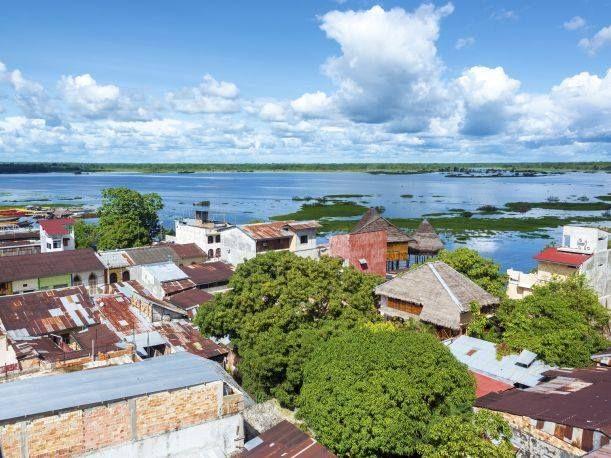 La ciudad de Iquitos se encuentra en la selva norte, al oriente del país. Es capital de la Región Loreto, que con casi el 30% del territorio nacional es la mayor y más septentrional del Perú. La ciudad se halla a orillas de un brazo secundario del río Amazonas, frente a un gran blanco permanente llamado Padre Isla, boscoso y de casi veinte kilómetros de longitud. La ciudad está rodeada de un sin número de ríos y canales menores. |
