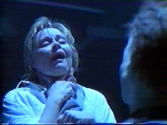The film opens with shots of a satanic ritual where a black robed figure threatens a naked infant with a large knife. Soon the familiar psycho returns to the Illinois' rural Haddonfield to slaughter anyone, and it's one gory death after another although it's difficult to make out what some of the murder weapons are in the dark photography of this movie. One of the few reasons to watch this is for the final screen performance of Donald Pleasence who died shortly after the film was finished.