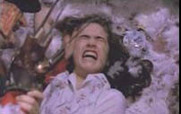 Director Wes Craven's best is an imaginative variation on the early 80's teen slasher formula. Four teens are tormented by identical dreams involving a disfigured fiend in a fedora, striped sweater, and razor tipped glove. When all her friends start dying, smart girl Langenkamp discovers the dream monster to be one Fred Krueger, a child molester and murderer who was torched by the neighborhood parents when released from jail on a technicality. In order to defeat the vengeful nightmare killer, Heather must try to bring him out of her dreams into the real world. The best of the popular series, only the "setting things up for the sequel" ending mars an otherwise perfect tale.