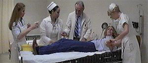 This picks up on the same night as the original, as Laurie Strode is hospitalized with psychiatrist Dr. Loomis close at hand. The shape, as you suspected is alive and well, and shambling through the hospital to get poor Laurie who soon learns she is Michael Myers' sister. A hypodermic needle thrust into an eyeball, slashed throats and a head dipped into scalding water are among the sights as Michael continues his rampage to find Laurie.