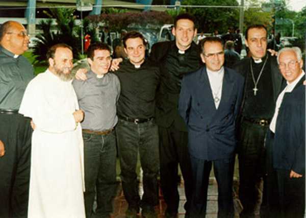 Padres Cantores : Jorjão , Antônio Maria (batina branca), Zeca (ao lado de M. Rossi) , Pe. Marcelo Rossi , Padre Zezinho