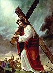 ; em seguida os mistérios dolorosos ( 3 a. f e 6 a. feira ) -- 1- A agonia de Jesus no horto do Getsêmani , 2- A flagelação de Jesus Cristo , 3- A coroação de espinhos , 4- A subida de Jesus, rumo ao Calvário, carregando a Cruz , 5- A crucifixão e morte de Jesus .