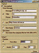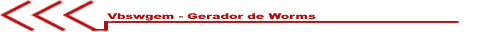 Agora, vamos configurar o worm que será gerado. Primeiramente você deve configurar a tela inicial do programa, que contem as configurações básicas, como nome, etc. Logo após, vamos declarar as variáveis, passo-a-passo, configurando como ele agirá após a infecção: Worm name: nome do seu worm, que vai aparecer no código-fonte. Your name: seu nome ou nick que vai aparecer como autor do worm no código-fonte. File name: nome do worm que o programa vai gerar e extensão. Você poderá escolher entre cinco tipos de extensões para enganar a vitima que visualizará o worm. A extensão verdadeira do worm é .vbs Copy worm to: quando o worm for executado pela vitima, ele vai gerar uma autocópia na pasta que você escolher. As opções são Windows, System ou Temp.