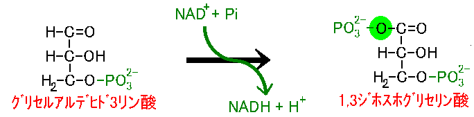 結果的に生じる、1,3ジホスホグリセリン酸は、1,3DPG とも書きます。