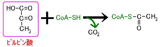 アセチルCoAとは、ピルビン酸がCoA(補酵素A)と合体したものです。
