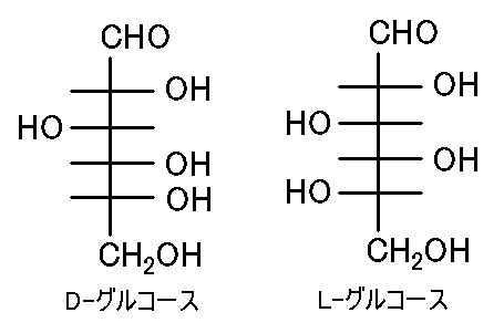 例えばグルコースの場合、D-グルコースとL-グルコースは、
